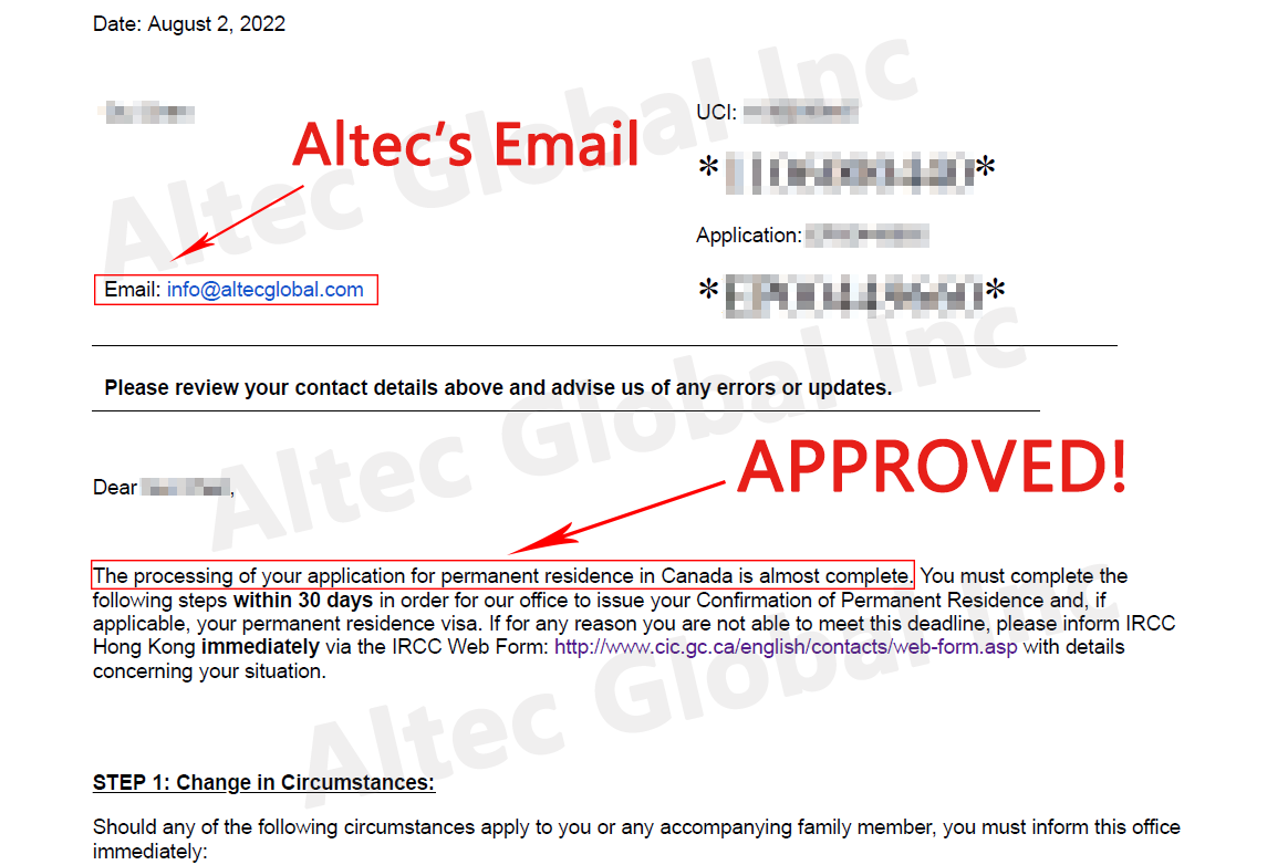 A Express Entry Federal Skilled Worker PR Application Approved with Altec Assistance !