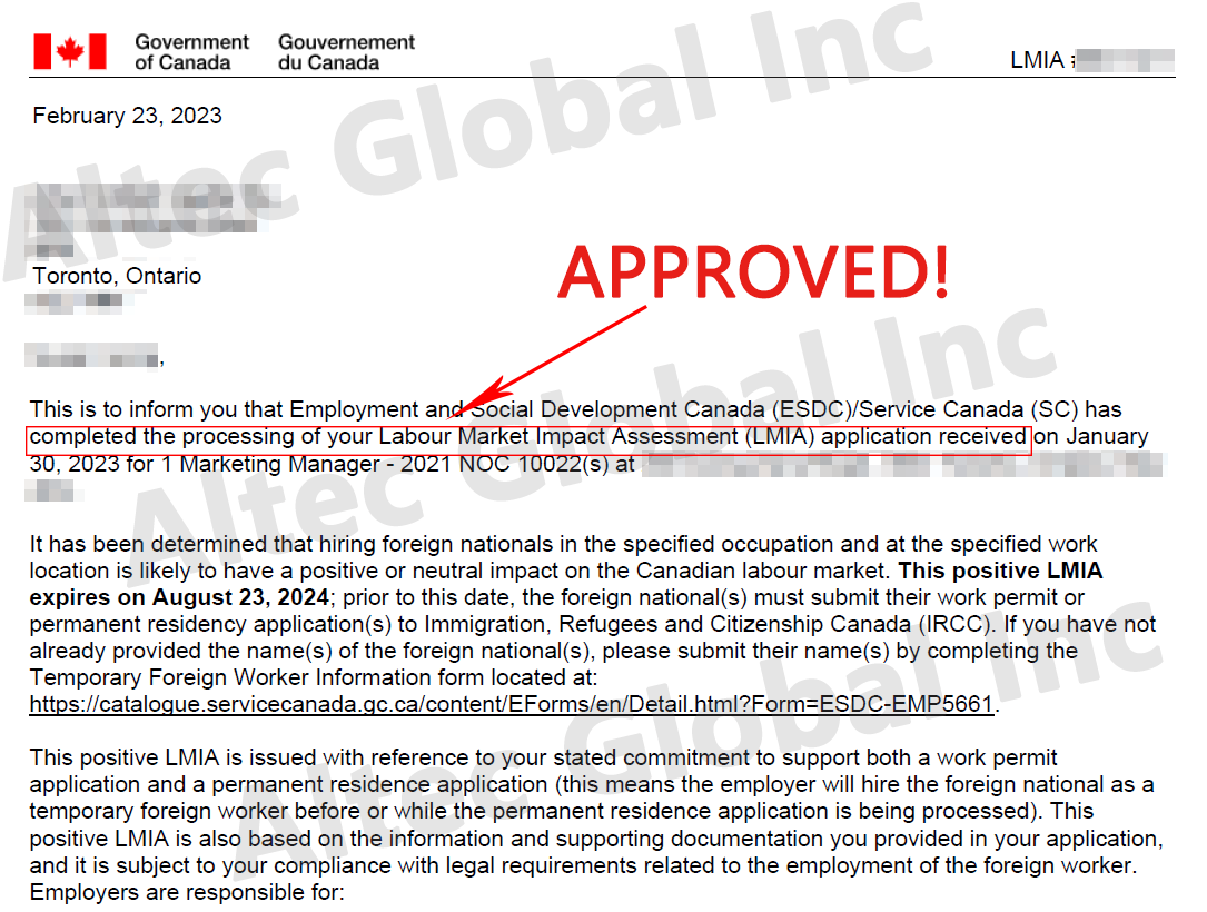 A LMIA Application Approved with Altec Assistance in Just 1 Month
