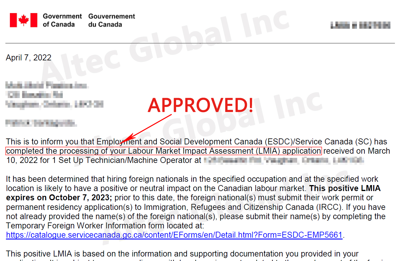 A LMIA Application Approved with Altec Assistance!
