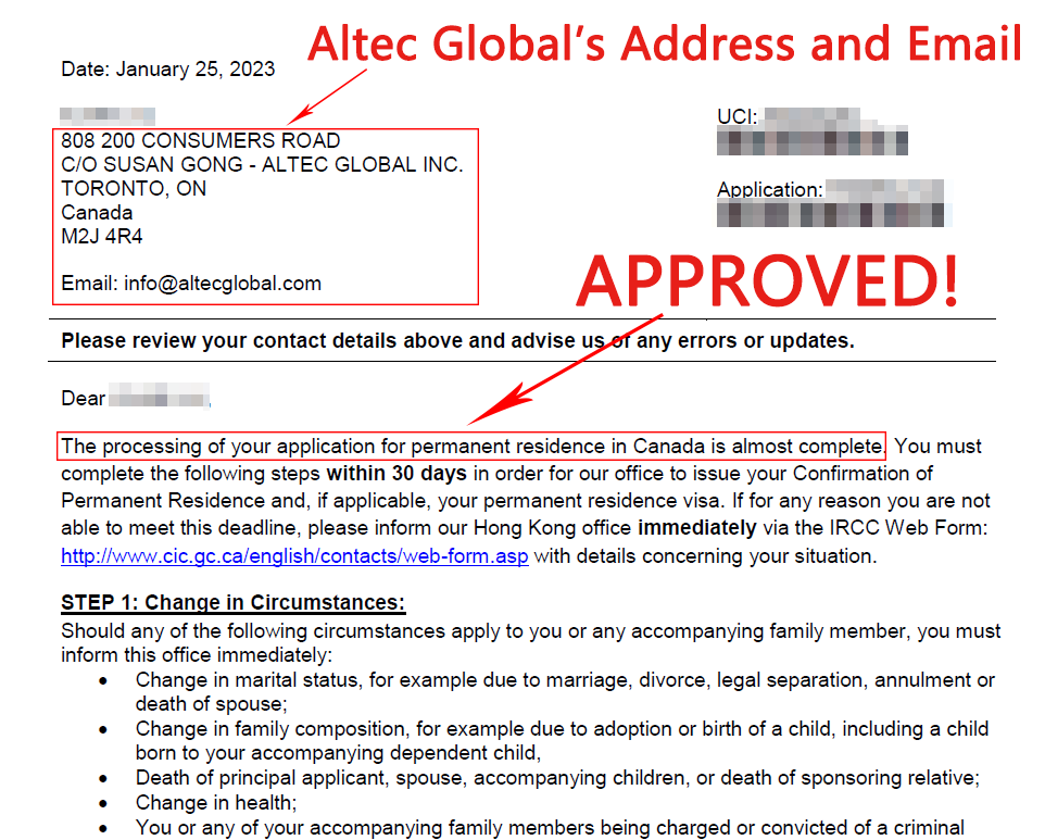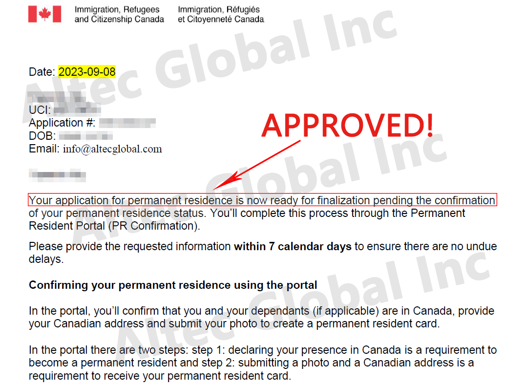 A parents grandparents sponsorship Application Approved with Altec Assistance in 43 Months