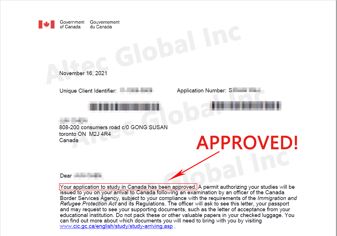 20211126 A Study Permit Application Approved with Altec Assistance