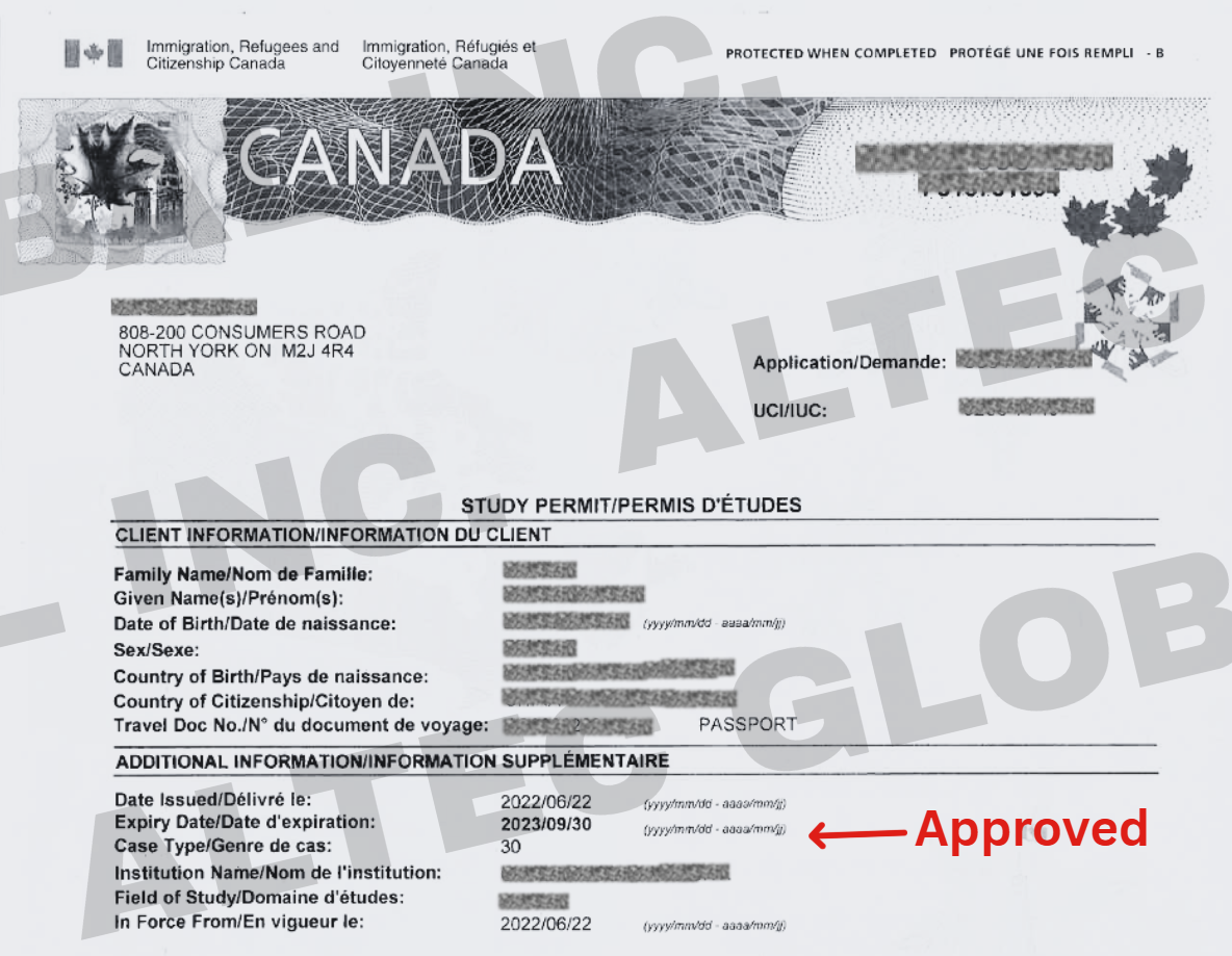 20220622 A Study Permit Application Approved with Altec Assistance