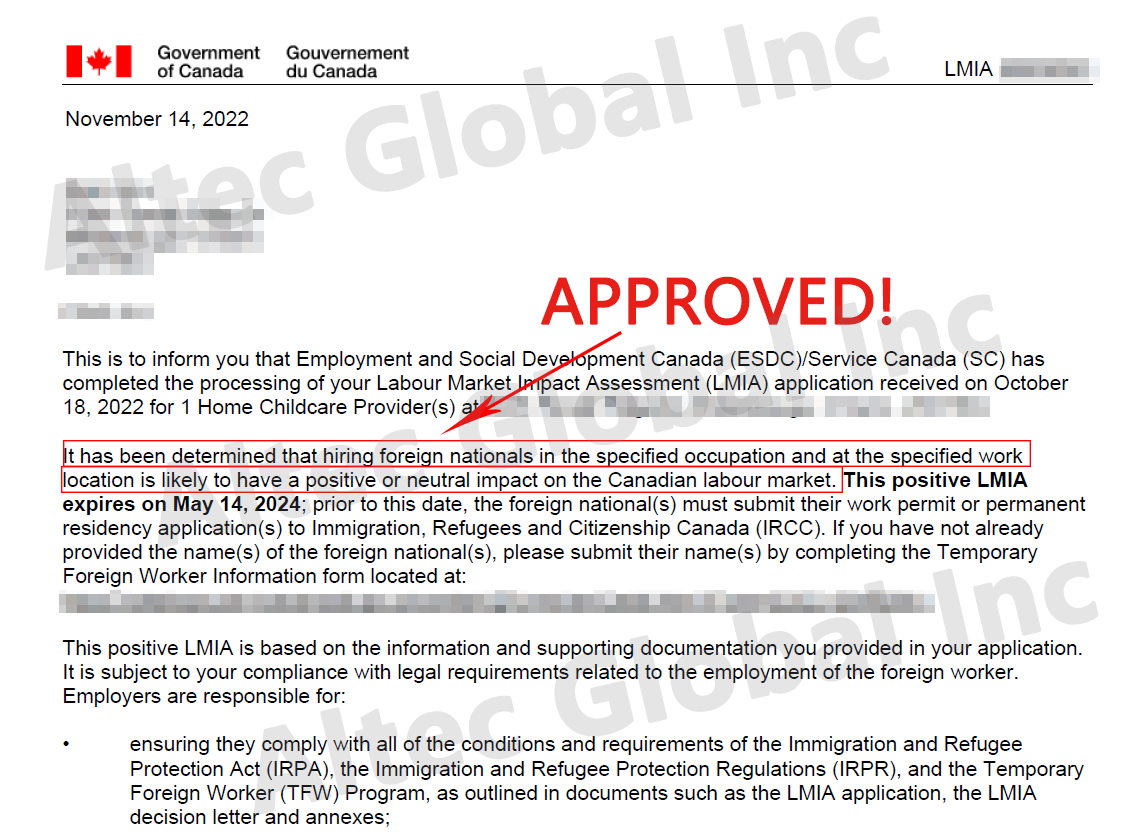 20221125 Another LMIA Application Approved with Altec Assistance in Just 1 Month