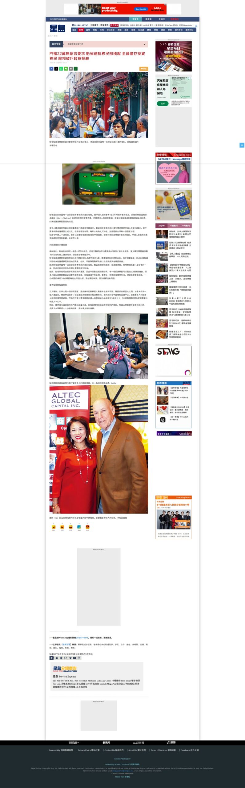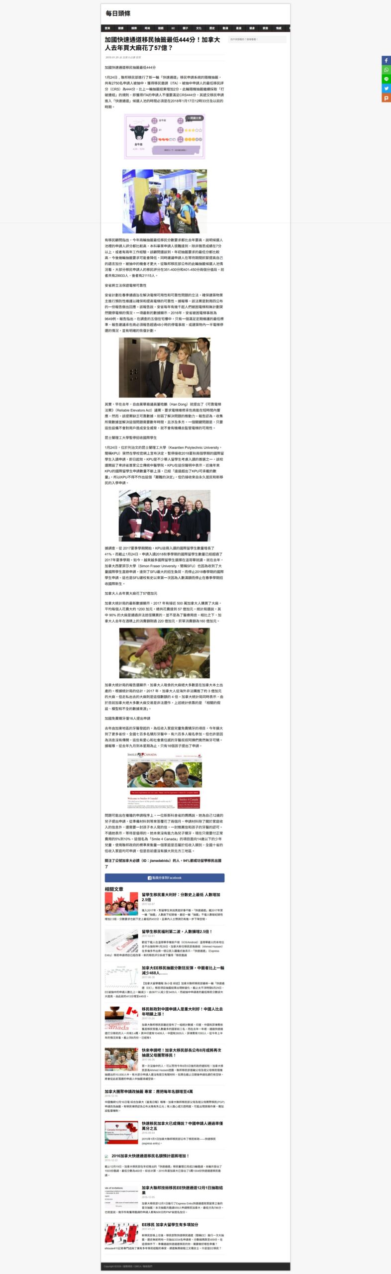 《明报》— 移民顾问警告加拿大正逐步收紧移民政策:父母及祖父母团聚抽签名额将大幅减少;建议国际学生进入劳动市场以争取永久居民身分