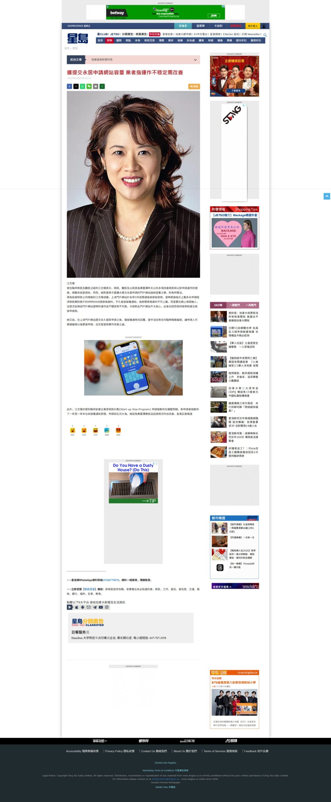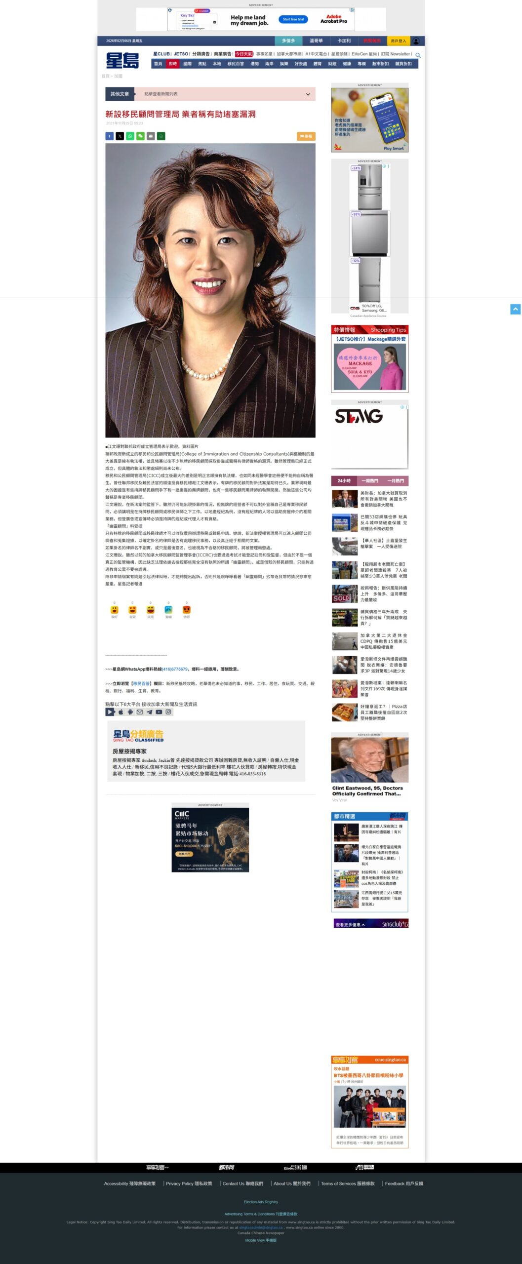 江文珊女士就 IRCC 网站的最新更新接受星岛日报采访