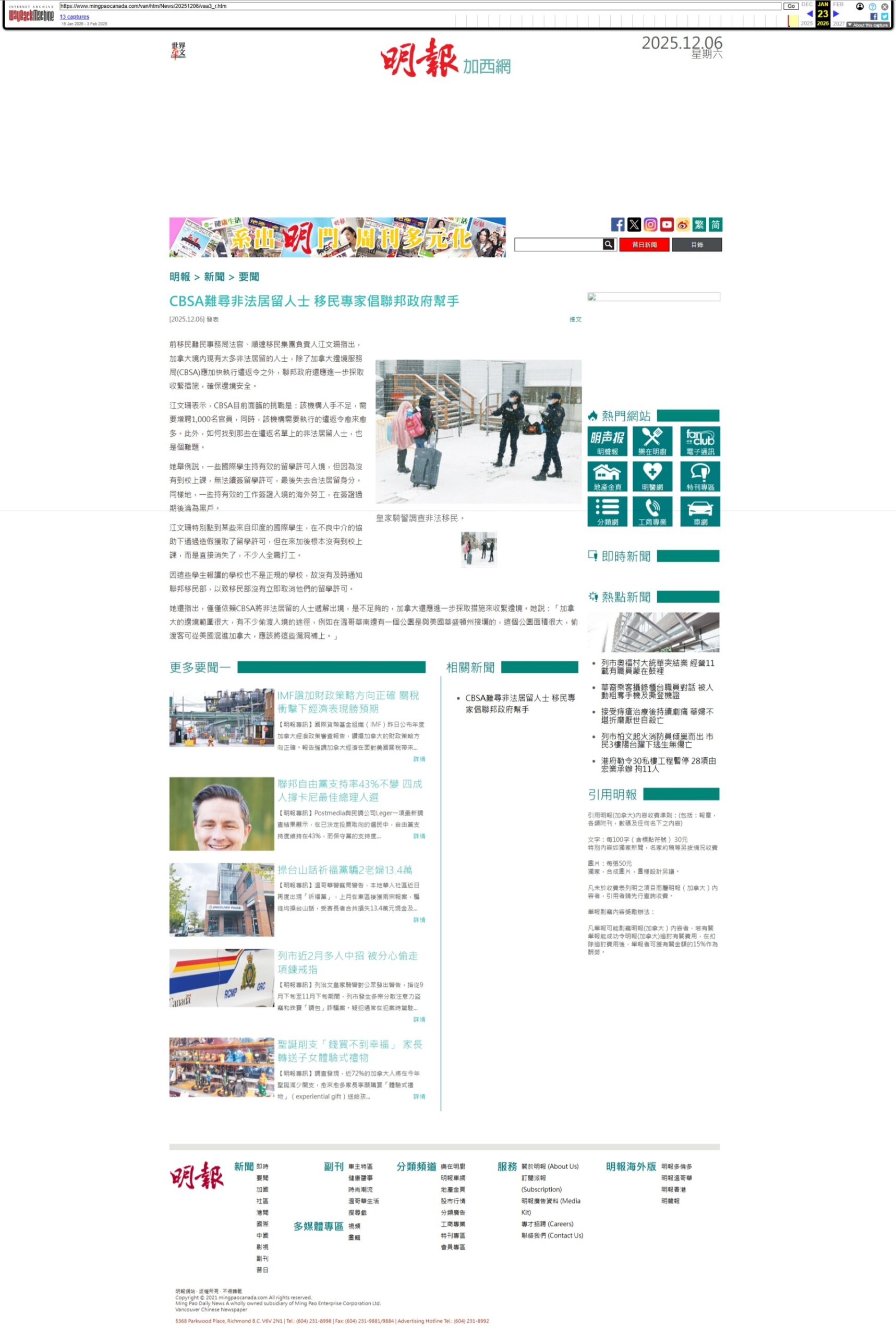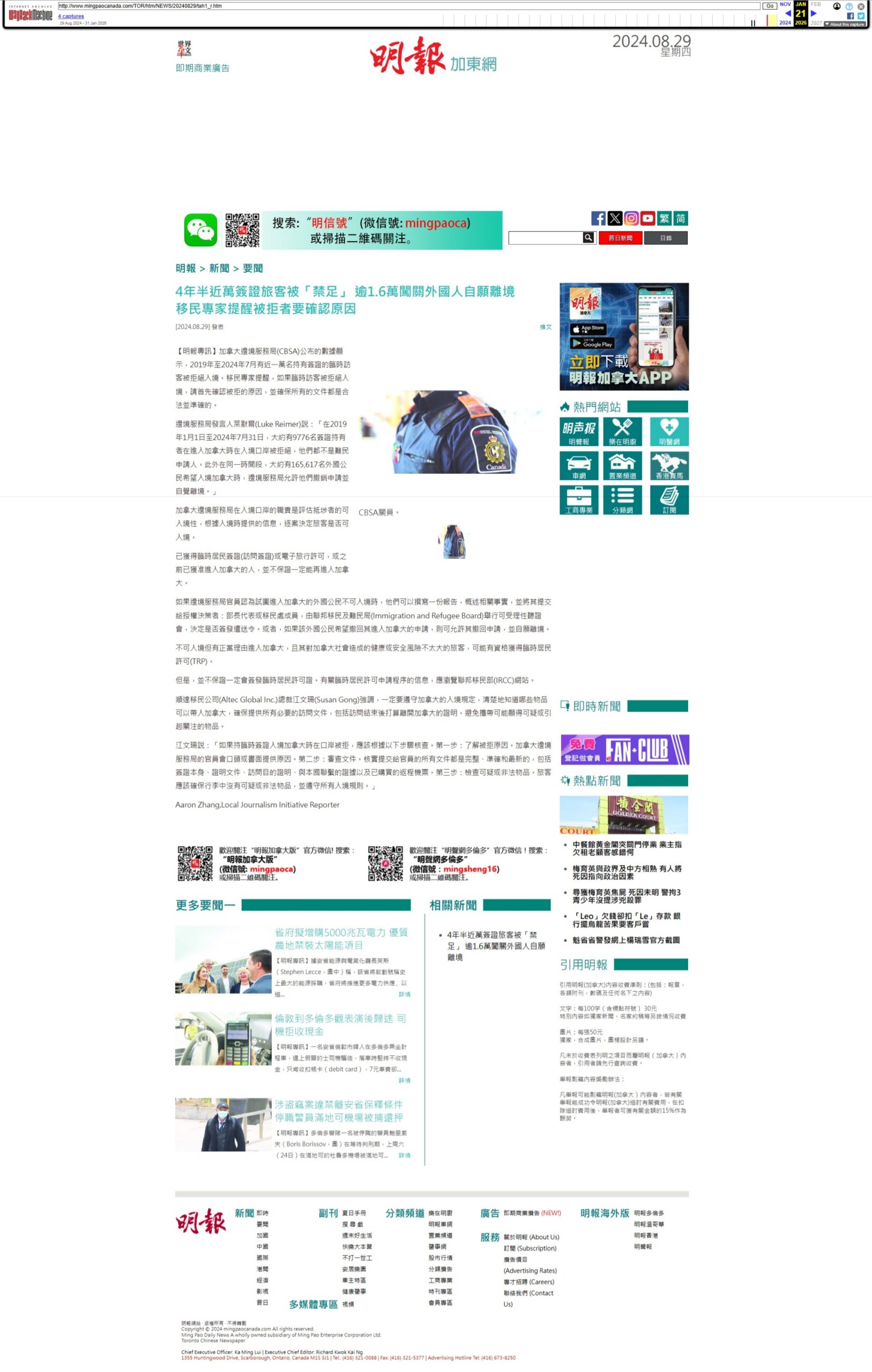 《明报》— 四年半内近一万名签证持有人被拒入境;逾 16,000 名非正常入境者自愿离境,加拿大移民专家呼吁遭拒旅客查明原因